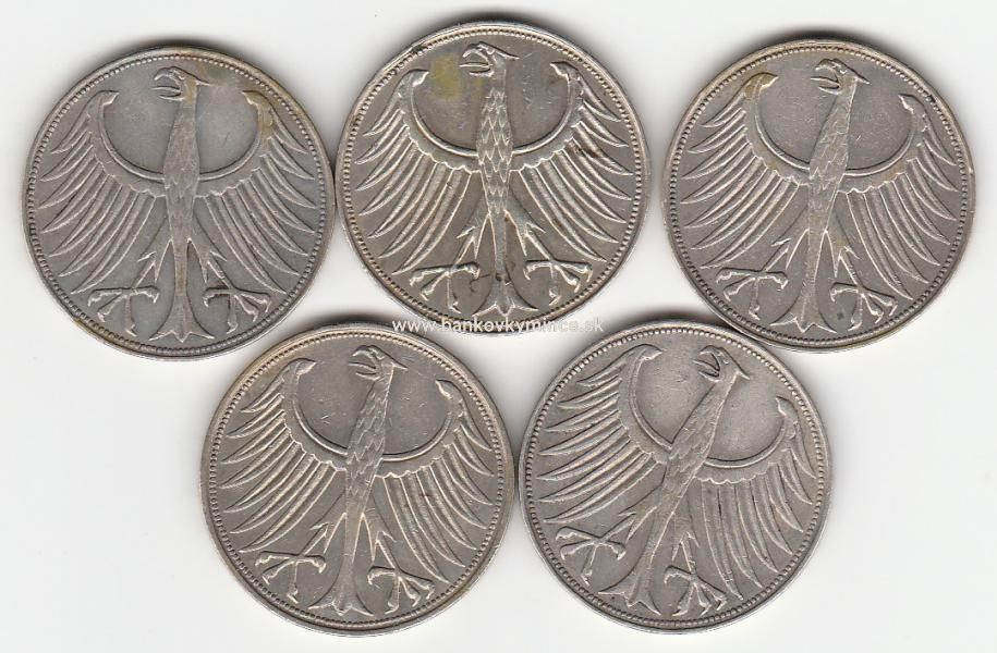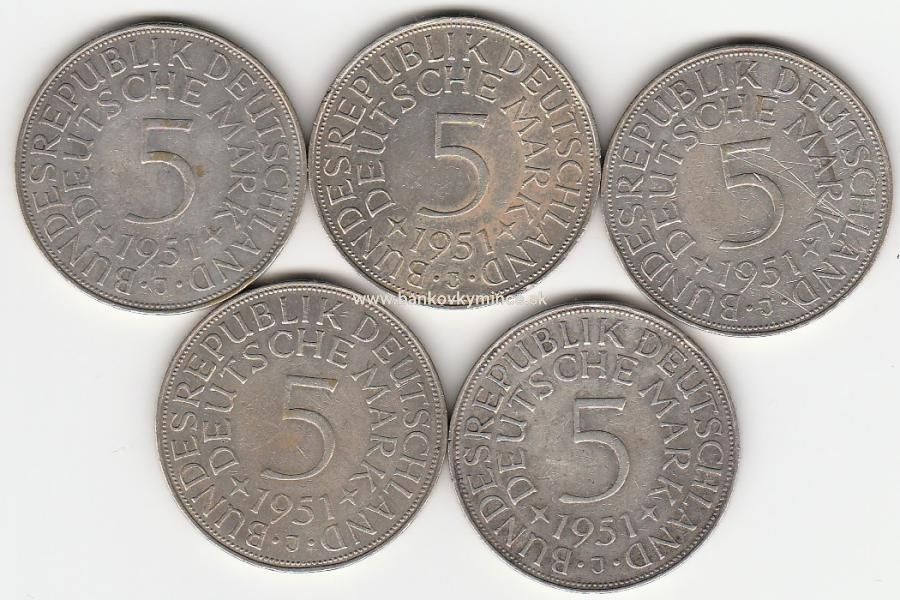 Konvolut 5ks 5 marka 1951 J Nemecko