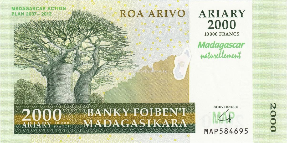 2 000 ariary/10 000 francs 2007 Madagaskar pamätná bankovka