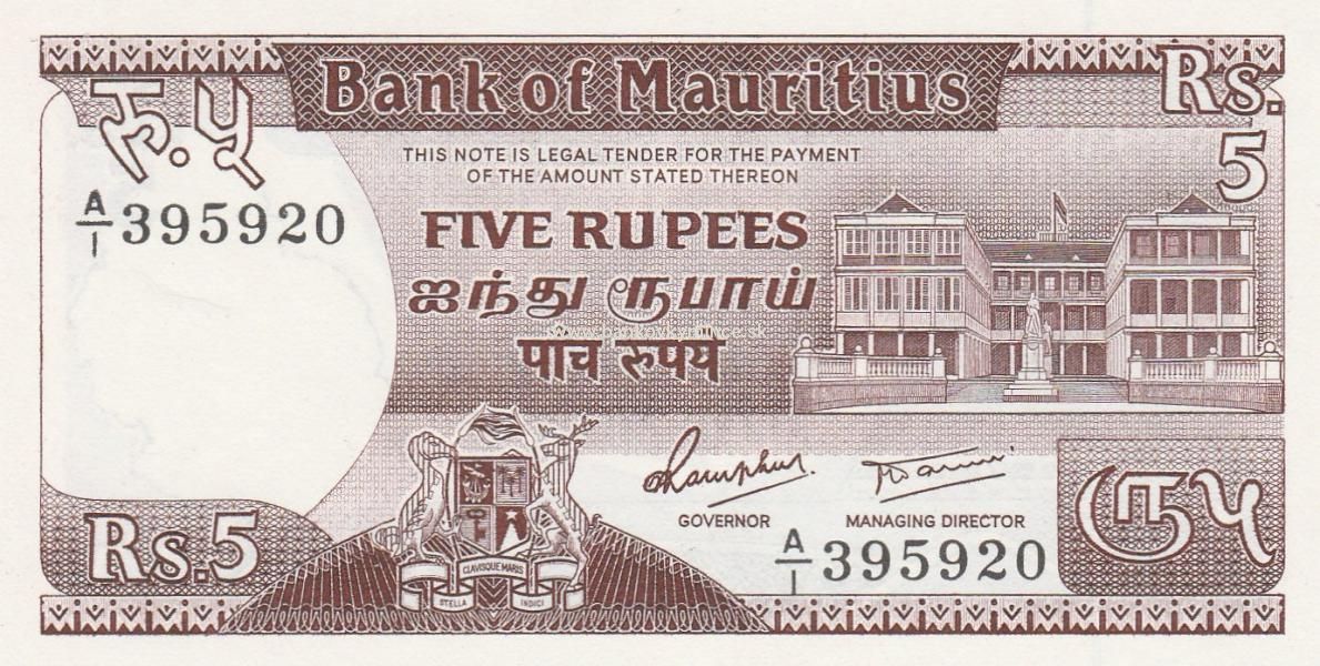 5 rupees 1985 Maurícius