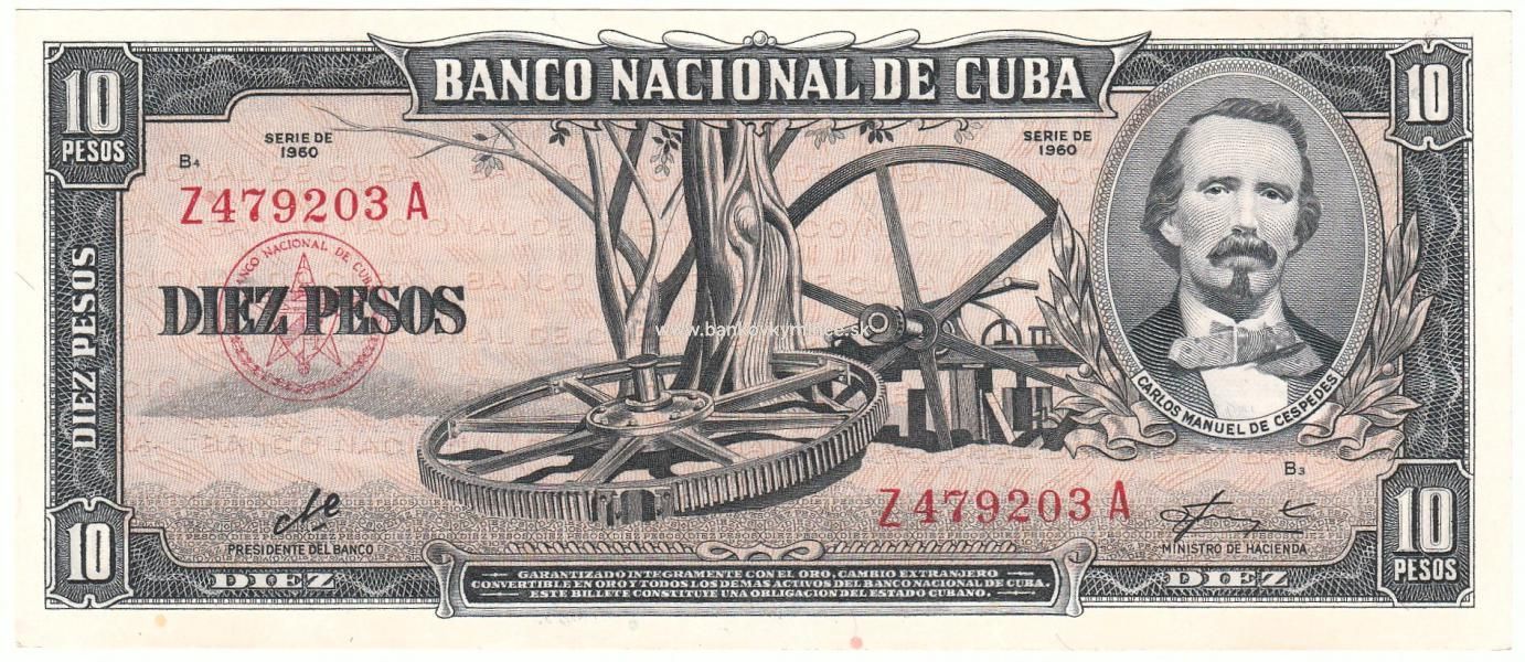 10 pesos 1956-60 Kuba s podpisom Che Guevara