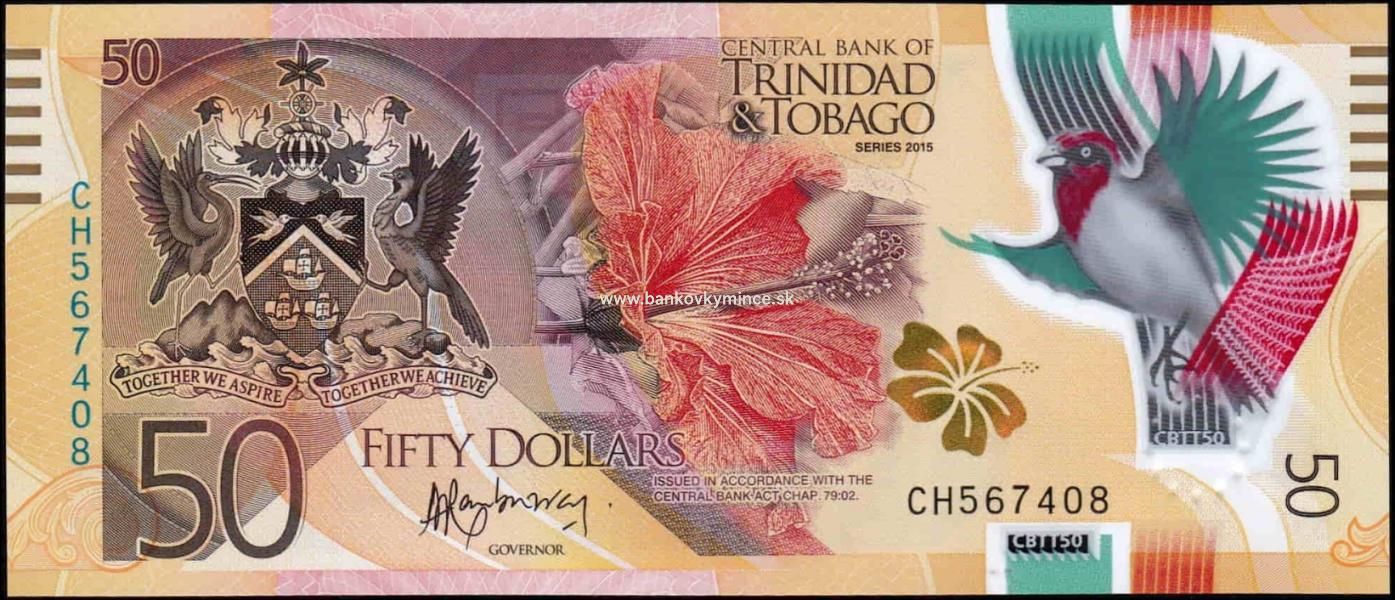 50 dollar 2015 Trinidad a Tobago polymerová bankovka