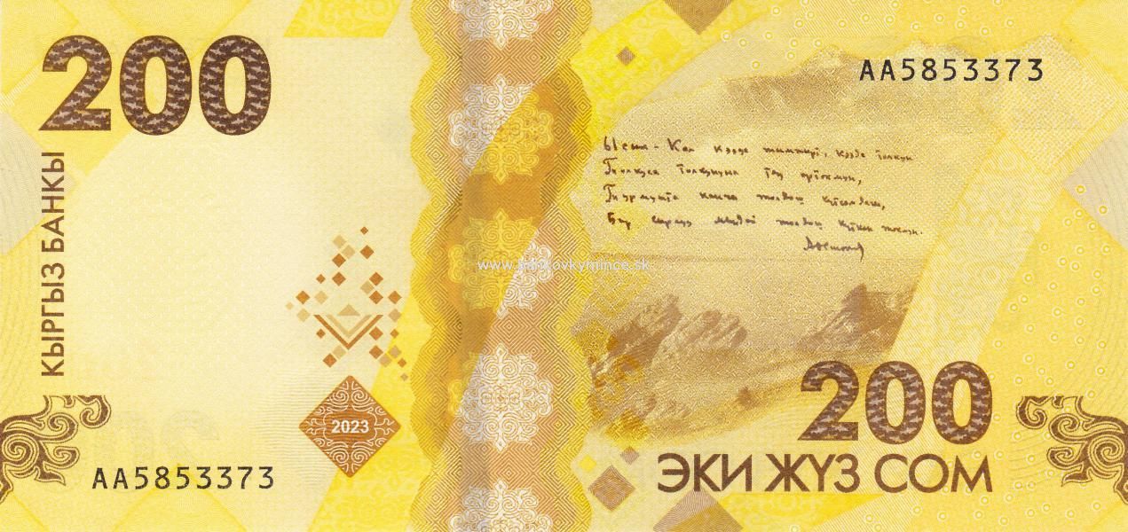 Úvod PAPIEROVÉ PLATIDLÁ Bankovky z Ázie Kirgizsko200 som 2023 Kirgizsko pamätná bankovka