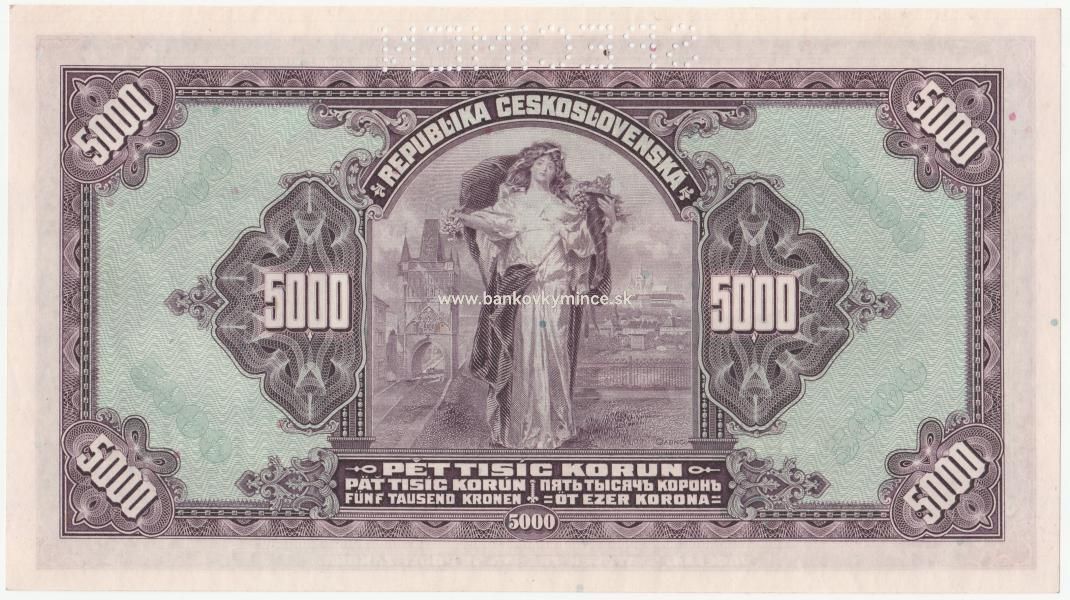 5 000 koruna 1920 C specimen-prítlač