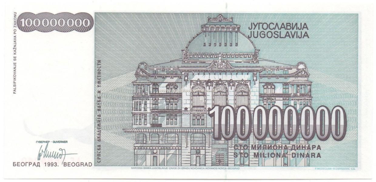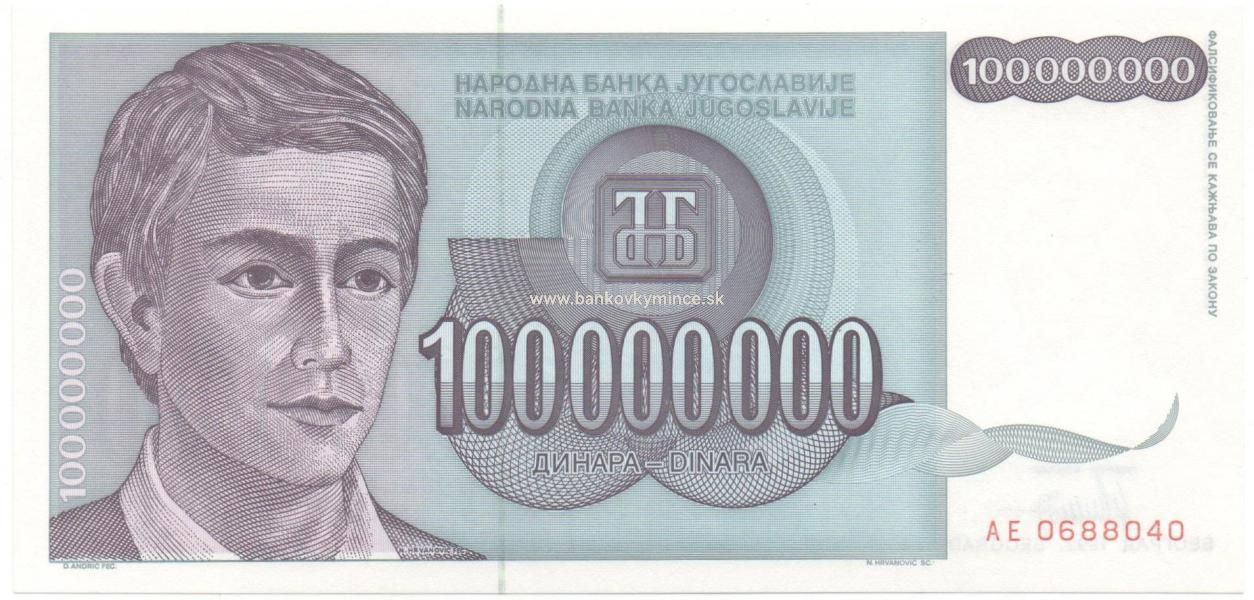 100 000 000 dinar 1993 Juhoslavia