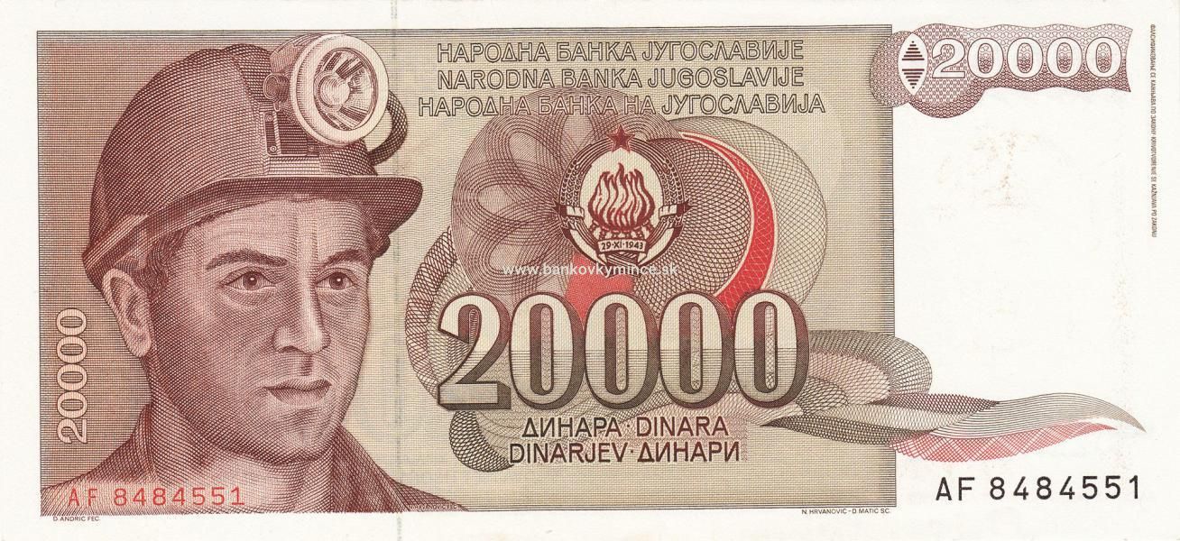 Hodnota 20 000 dinárov (20 000 dinárov) (20 000 YUD)