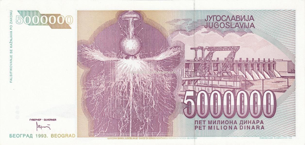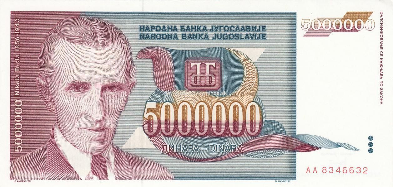 Hodnota 5 000 000 dinárov (5 000 000 dinárov) (5 000 000 YUR)