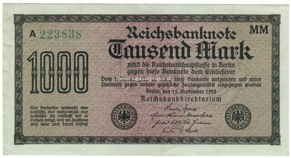 1 000 reichsbankovka 1922 Nemecko