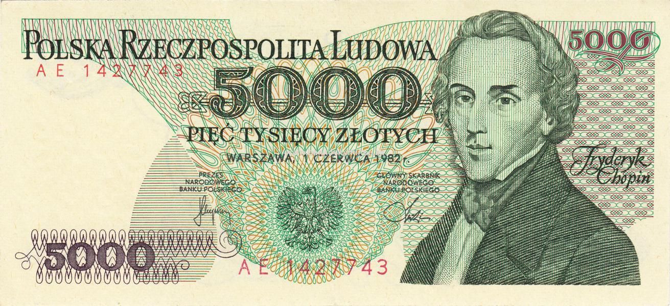 Úvod PAPIEROVÉ PLATIDLÁ Bankovky z Európy Polsko5 000 zlotých 1982-88 Polsko
