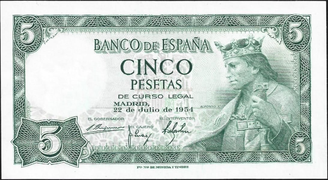 5 pesetas 1954 Španielsko
